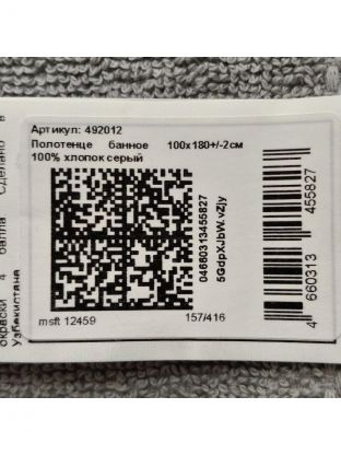 Размер полотенца — 100х180 см. Это оптимальная длина для взрослых любого роста, удобно использовать после душа, в бане или на пляже.