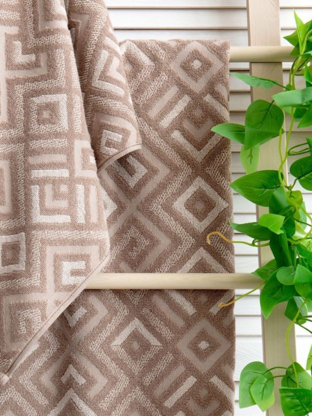 Подходит ли полотенце для подарка? Благодаря стильному сочетанию мокко и светло-бежевого оттенка, а также современному геометрическому дизайну, изделие выглядит презентабельно и уместно для любого повода. Даже без подарочной упаковки оно станет практичным и приятным знаком внимания.
