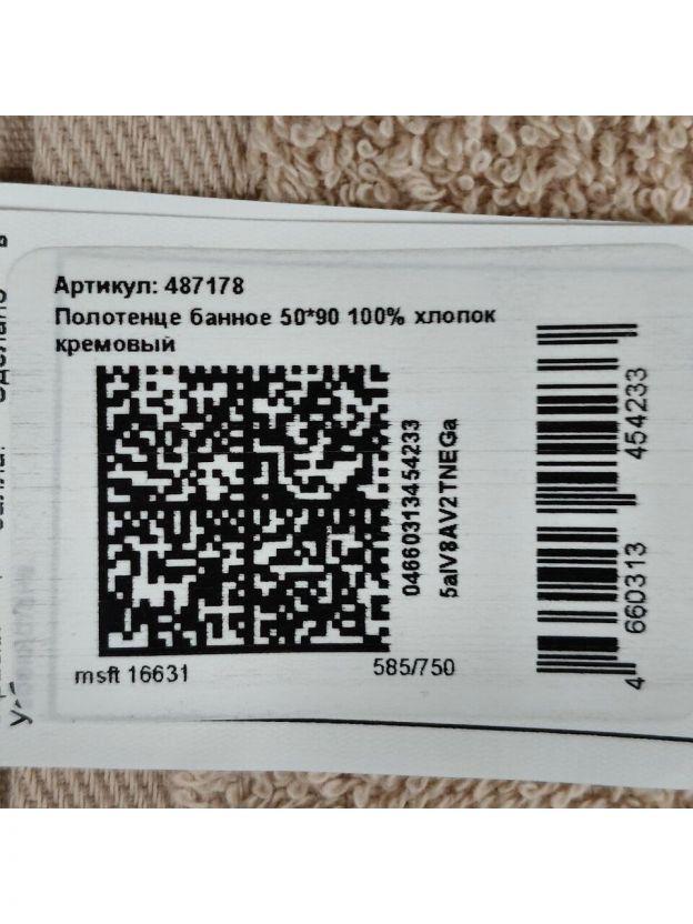 Полотенце банное 50х90 см, 100% хлопок, 450 г/м2, Эден, Silvano, кремовое, Узбекистан