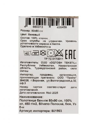 Чем отличается это полотенце от аналогов? В отличие от синтетических моделей, натуральный хлопок не вызывает раздражения, быстро сохнет и сохраняет форму. Бежевый цвет и гладкая махровая фактура делают изделие практичным и стильным. Если вы ищете, какое полотенце лучше выбрать для подарка или ежедневного использования — Silvano сочетает долговечность, комфорт и трендовый внешний вид.