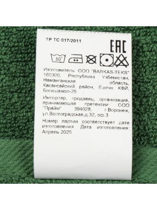 Плотность 470 г/м2, махровая ткань — обеспечивает долговечность, мягкость и эффективное впитывание влаги.