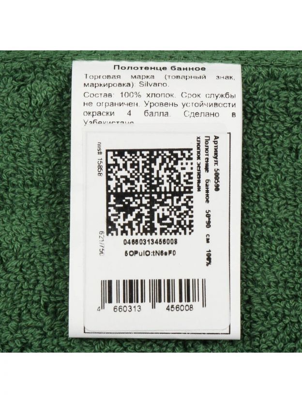 Полотенце банное 50х90 см, 100% хлопок, 470 г/м2, Амур, Silvano, зеленое, Узбекистан
