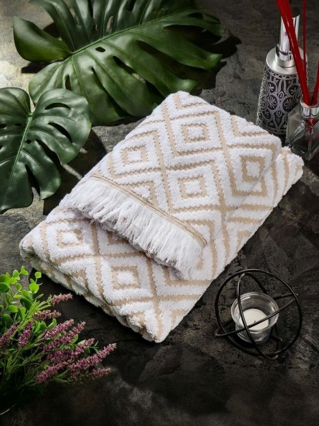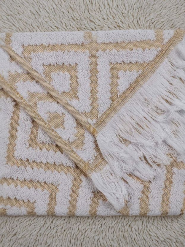 Размер: 50х90 см, плотность: 500 г/м2, состав: 100% хлопок, страна производства: Узбекистан, цвет: бежевый, фактура: махровый, отделка: бахрома.