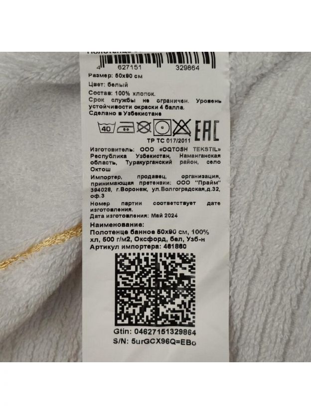 Полотенце банное 50х90 см из Узбекистана — это оптимальный вариант для тех, кто ищет недорогое махровое полотенце для дома или дачи. 100% хлопковое волокно обеспечивает отличную впитываемость и гипоаллергенность, что особенно важно для чувствительной и детской кожи. Благодаря плотности 500 г/м2 изделие сохраняет форму и мягкость даже после многократных стирок, не линяет и не теряет белизну.