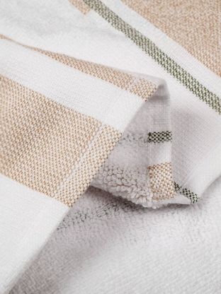 Чем отличается это полотенце от аналогов? В отличие от синтетических или смешанных тканей, натуральный хлопок из Узбекистана не вызывает раздражения, не электризуется и долго сохраняет свежий вид. Бежевый цвет и лаконичные полосы впишутся в любой современный интерьер. Можно смело брать для дачи, спортзала, путешествий — ткань не линяет и сохраняет насыщенность цвета даже после многократных стирок.
