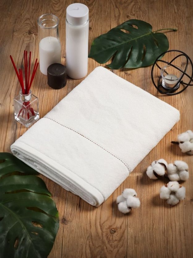 - Махровое полотенце из 100% хлопка — мягкость, гипоаллергенность и быстрота впитывания влаги
