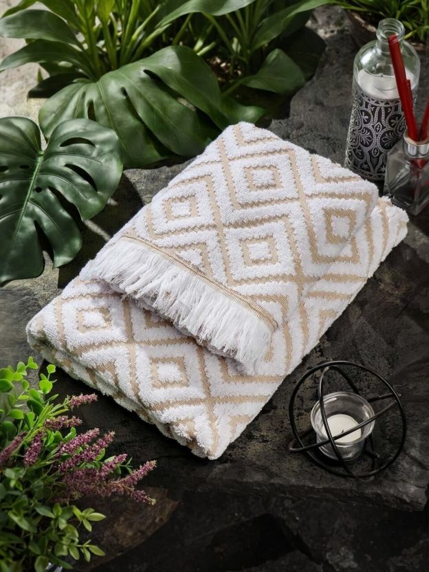 Полотенце подходит для разных сценариев: ежедневного ухода, поездок на дачу, занятий спортом или подарка. Бежевый цвет и современный дизайн с бахромой гармонично впишутся в любой интерьер ванной комнаты. Для максимального комфорта достаточно выбрать нужный размер и плотность — 70х140 см считается универсальным.
