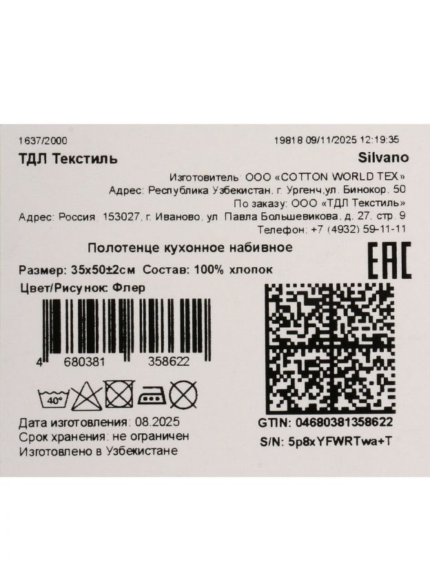 Размер полотенца – 35х50 см. Этого достаточно для комфортного использования на кухне, компактно хранится и быстро сохнет.