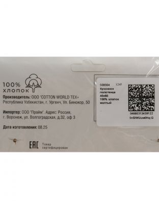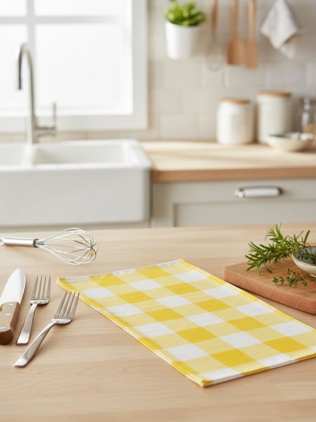 Кухонное полотенце 40х60 см из 100% хлопка с желтой клеткой — практичное и долговечное решение для кухни, дачи или подарка. Закажите с быстрой доставкой из Узбекистана.