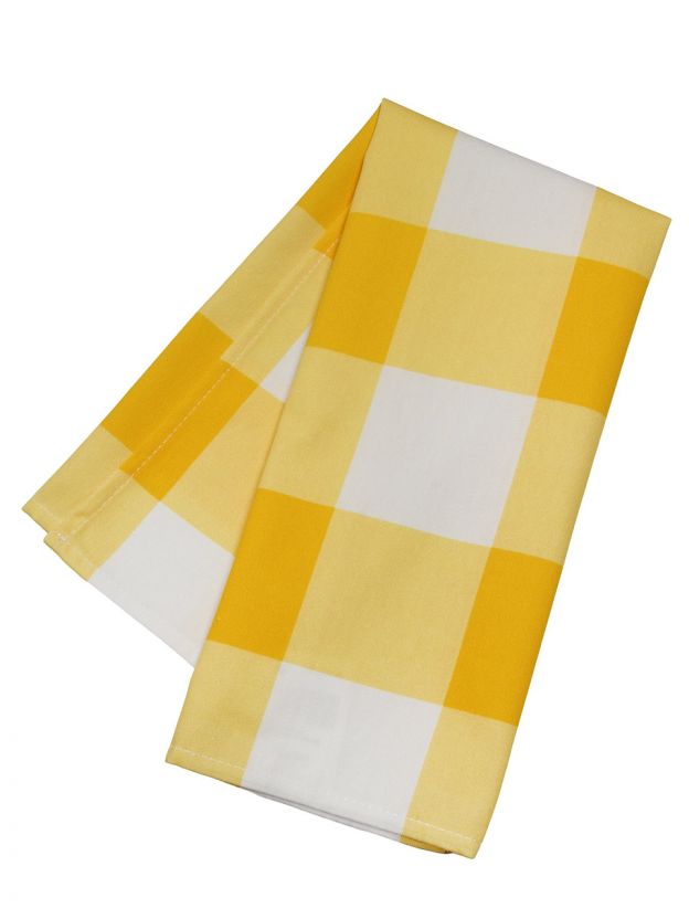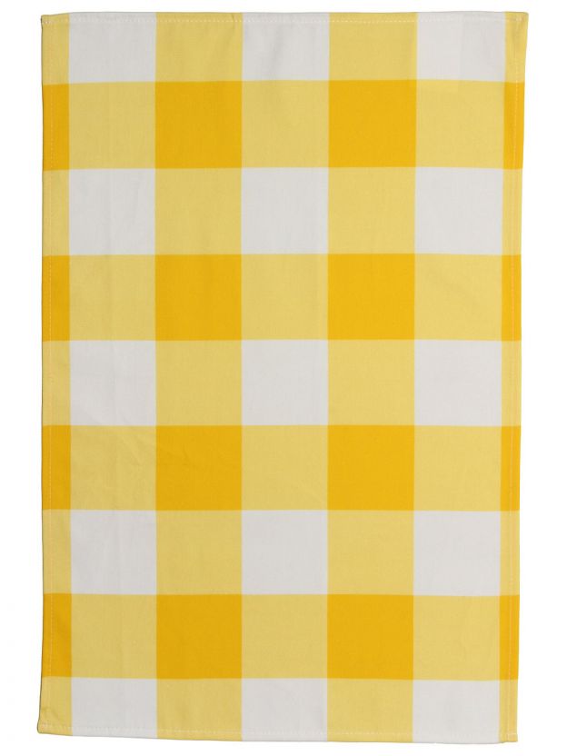 Полотенце выполнено в яркой желтой клетке — универсальный и стильный вариант для любого интерьера, подходит для подарка на новоселье или дачный сезон.