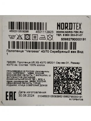 Полотенце кухонное 40х70 см, 240 г/м2, 100% хлопок, Verossa, Серебряный век Вид 1, Россия