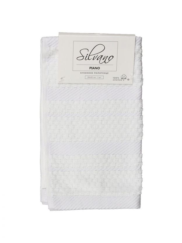 Полотенце кухонное махровое, 30х50 см, 400 г/м2, 100% хлопок, Silvano, Piano, белое, Узбекистан