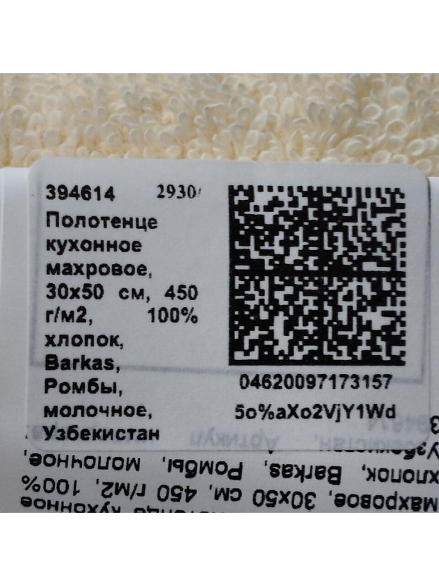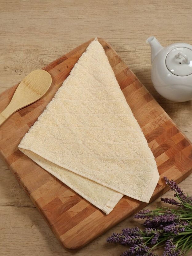 Полотенце кухонное махровое, 30х50 см, 450 г/м2, 100% хлопок, Barkas, Ромбы, молочное, Узбекистан