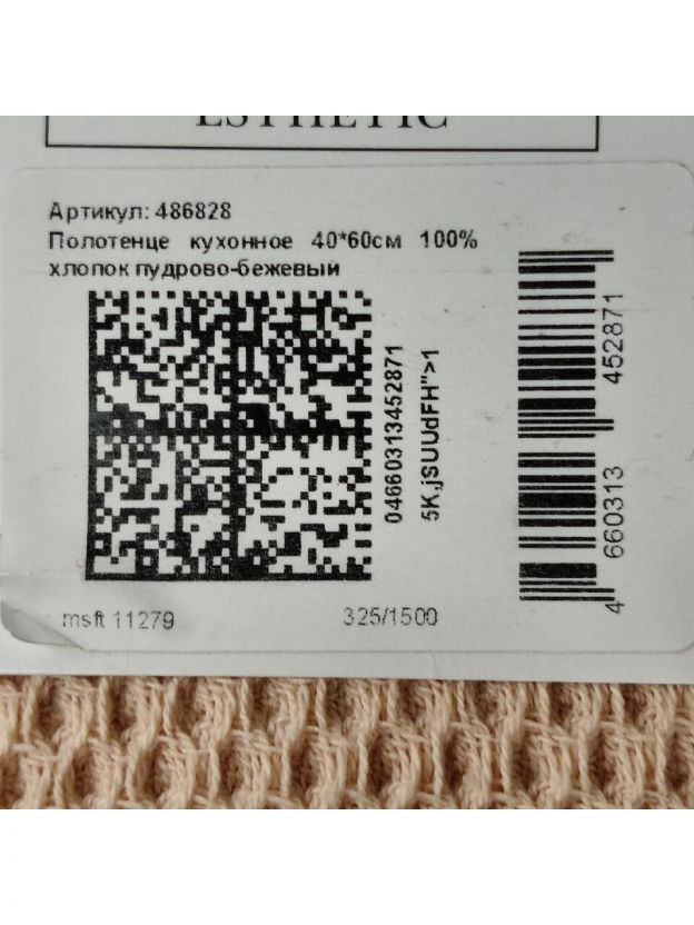 Полотенце кухонное вафельное, 40х60 см, 300 г/м2, 100% хлопок, Silvano, Esthetic, пудрово-бежевое, Узбекистан