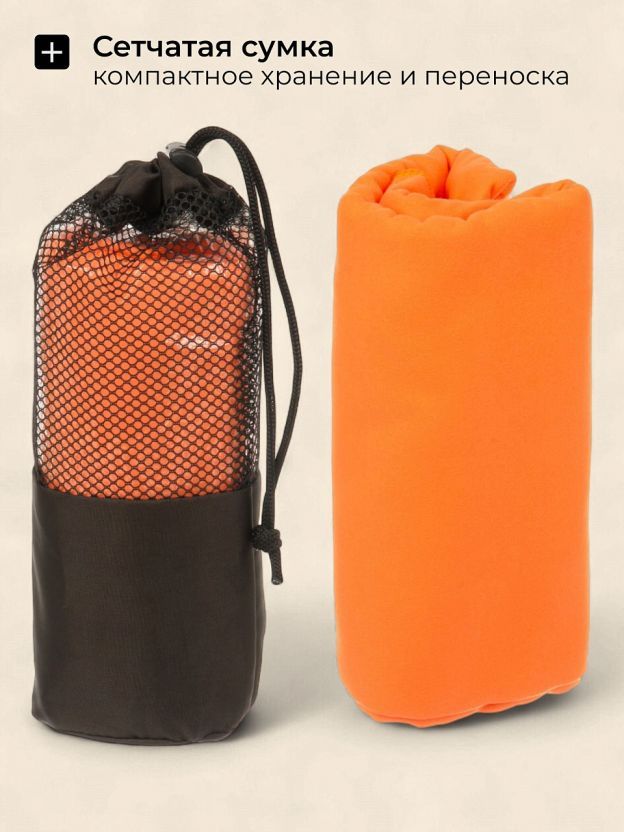 Компактное пляжное полотенце, мягкое, приятное на ощупь и не занимает много места в сумке, в отличие от махрового. Полотенце прекрасно впитывает воду, поскольку выполнено из полиэстера, а также быстро сохнет. Для удобства полотенце оснащено крючочком, благодаря которому вы сможете прикрепить его к рюкзаку или другой вещи. Полотенце упаковано в удобную сетчатую сумочку. Идеально подходит для поездок, для пешего туризма, спорта, отдыха на пляже.
