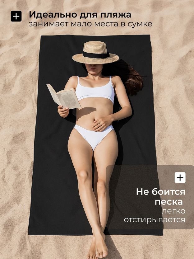 Компактное пляжное полотенце, мягкое, приятное на ощупь и не занимает много места в сумке, в отличие от махрового. Полотенце прекрасно впитывает воду, поскольку выполнено из микрофибры, а также быстро сохнет. Для удобства полотенце оснащено крючочком, благодаря которому вы сможете прикрепить его к рюкзаку или другой вещи. Полотенце упаковано в удобную сетчатую сумочку. Идеально подходит для поездок, для пешего туризма, спорта, отдыха на пляже.