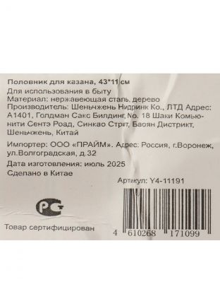 Половник для казана, нержавеющая сталь, 43х11 см, Y4-11191, ручка дерево