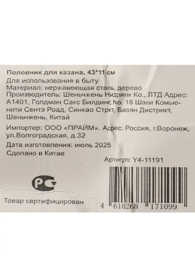 Половник для казана 43х11 см с деревянной ручкой — удобство и долговечность для идеальных блюд на даче и дома, без брызг и ожогов.