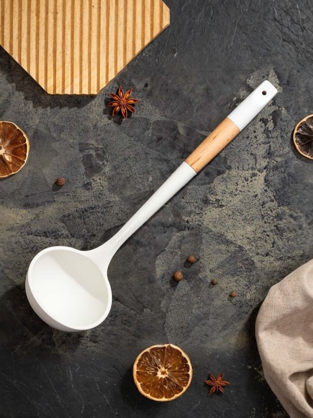 Половник для кухни, бамбук, силикон, белый, Daniks, Skandi, WFCFA-0037-3