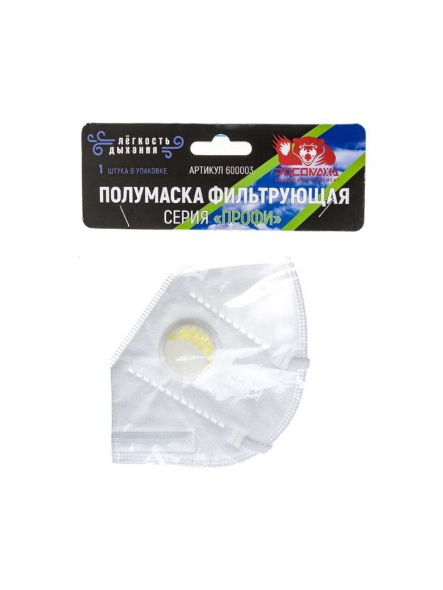Полумаска защитная Росомаха, Профи, нетканый материал, коническая, одноразовая для лица с клапаном, белая, 600003