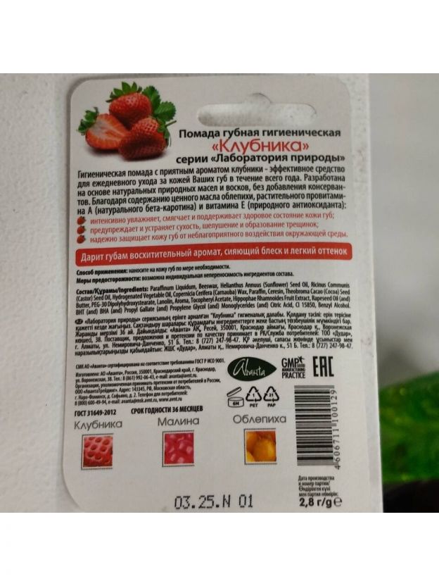 Помада гигиеническая Аванта, Клубника, 2.8 г, 1322