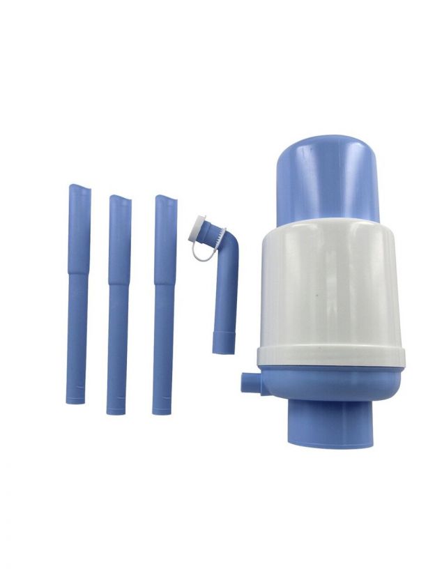 Помпа для воды, предназначена для розлива питьевой воды путем нажатия на верхнюю часть помпы (кнопку) вручную из стандартных 19-ти литровых бутылей с зажимным кольцом. Помпа обладает оптимальным усилием нажатия для наливания воды. Гофра помпы выполнена из полиэтилена с увеличенной толщиной стенки, что придает ей долговечность и эластичность. Снабжена регулируемой трубкой забора воды.