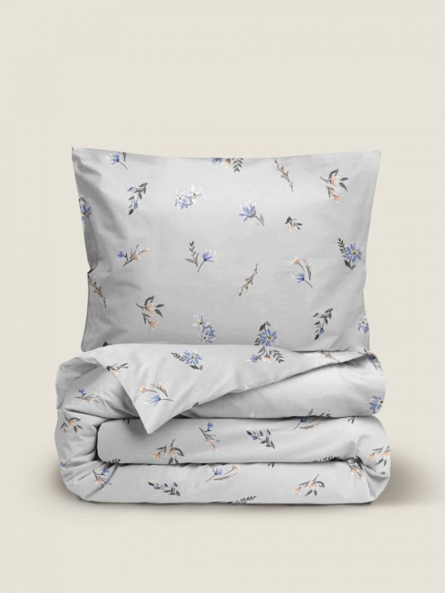 Постельное белье 1.5-спальное Silvano 20463 из поплина: свежий серый дизайн с цветами, 100% хлопок, 2 наволочки 50х70, идеальный подарок и комфорт для сна.