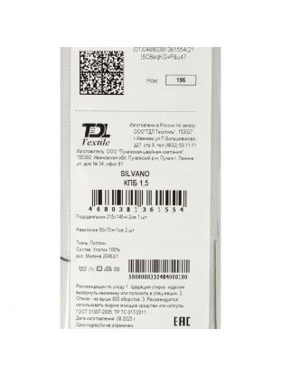 Постельное белье 1.5-спальное, 2 наволочки 50х70 см, пододеяльник 145х215 см, Silvano, поплин, 20463