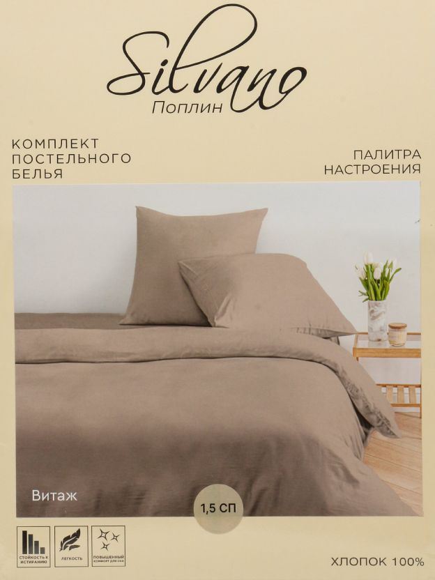 Постельное белье 1.5-спальное, простыня 145х214 см, 2 наволочки 50х70 см, пододеяльник 145х215 см, Silvano, поплин, Витаж