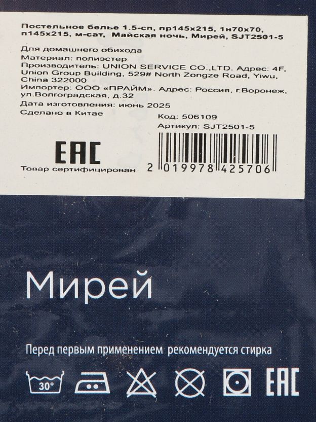 Постельное белье 1.5-спальное Майская ночь Мирей из микросатина — современное решение для тех, кто ценит комфорт и практичность. Материал — 100% полиэстер, что обеспечивает быстрое высыхание, устойчивость к выцветанию и простоту ухода. Часто спрашивают: «Как выбрать постельное белье для дачи или подростка?» — этот комплект оптимален по цене и долговечности, легко стирается при 30 градусах, не требует сложного глажения.