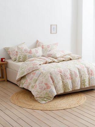 В данном комплекте пододеяльник без застежки, простыня также без резинки — это облегчает уход и подходит для большинства стандартных матрасов.