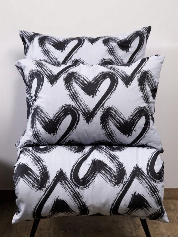- Оригинальный дизайн Dark love: модный серый цвет, узор с сердечками, универсально подходит для интерьера.