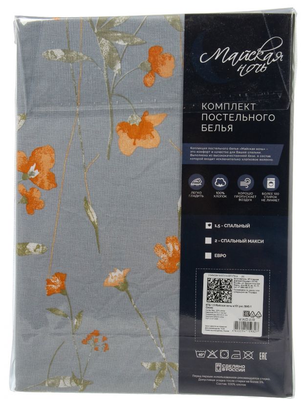 Постельное белье «Сиано» бренда Майская ночь — оптимальное решение для тех, кто ищет недорогой и долговечный комплект для дома или дачи. Натуральная бязь из 100% хлопка обеспечивает приятные тактильные ощущения, а серый цвет с цветочным принтом гармонирует с любым интерьером. Комплект подходит для регулярного использования: ткань не скатывается, легко переносит стирку при 40 градусах и быстро сохнет.