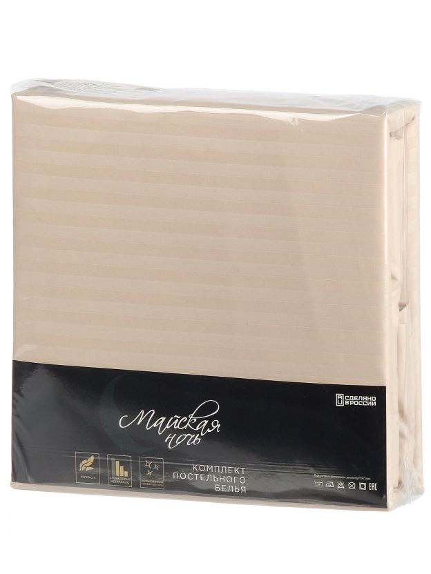 Постельное белье 1.5-спальное «Майская ночь» из страйп-полисатина: комфортный сон, долговечность и стильный бежевый дизайн. Подарочная упаковка — идеальный вариант для подарка.