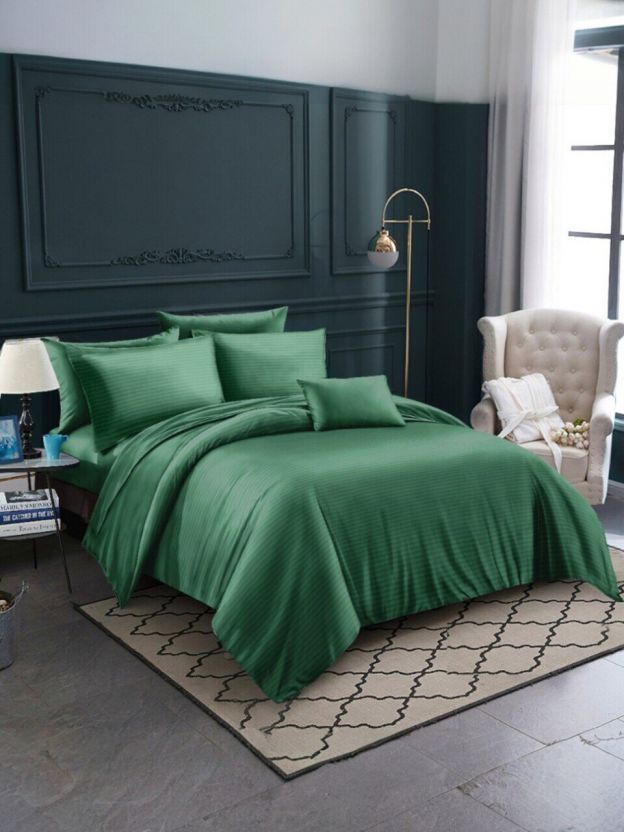 Постельное белье 1.5-спальное, простыня 150х220 см, 2 наволочки 70х70 см, пододеяльник 145х215 см, Майская ночь, страйп-полисатин, зеленое, 11/008-PSS/MAY