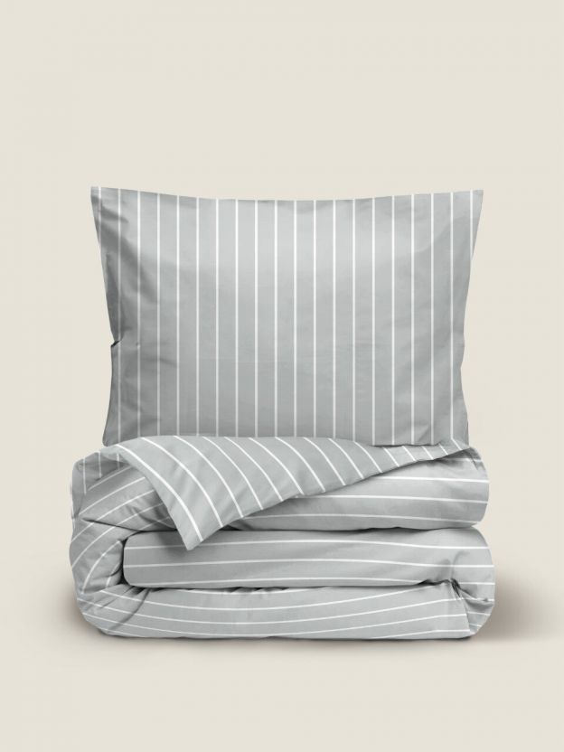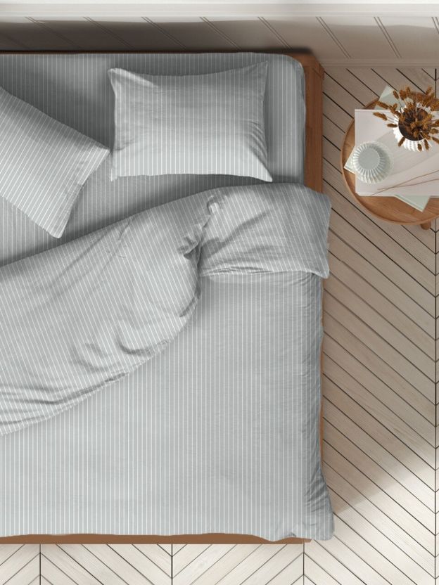 Постельное бельё 2-спальное Silvano 20465 — идеальный выбор для комфортного сна: 100% хлопок-поплин, стильный серый с полосками, подарочная упаковка.