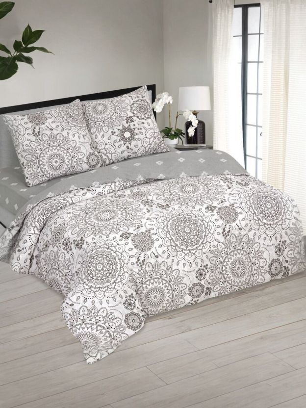 Часто спрашивают, как выбрать двуспальное постельное белье для дачи или подарка — этот комплект решает обе задачи: универсальный серый цвет, актуальный орнамент, подарочная упаковка. В отличие от классических комплектов, здесь простыня фиксируется по периметру, что облегчает уход и экономит время. Если интересует, подходит ли для аллергиков — натуральный хлопок минимизирует раздражения и подходит даже для чувствительной кожи. По сравнению с синтетическими аналогами, поплин долговечнее, не электризуется и сохраняет форму после многократных стирок.