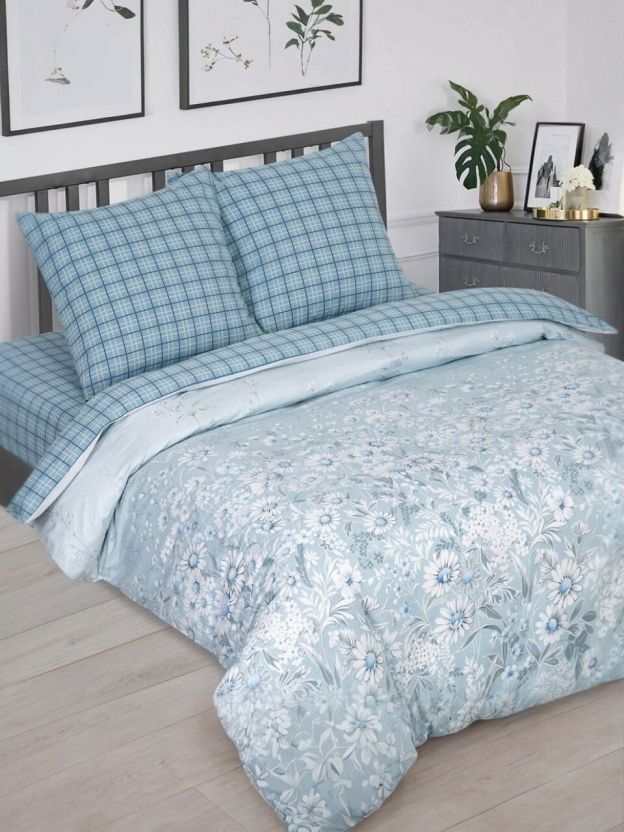 - 100% хлопок-поплин: прочная, дышащая ткань, оптимальный размер комплекта для двуспальной кровати (простыня 160х200, пододеяльник 175х215, 2 наволочки 70х70)