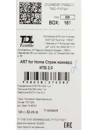 Постельное белье 2-спальное, простыня 180х216 см, 2 наволочки 50х70 см, пододеяльник 175х215 см, ART for Home, полисатин, Стриж жаккард, Овал 14-4500