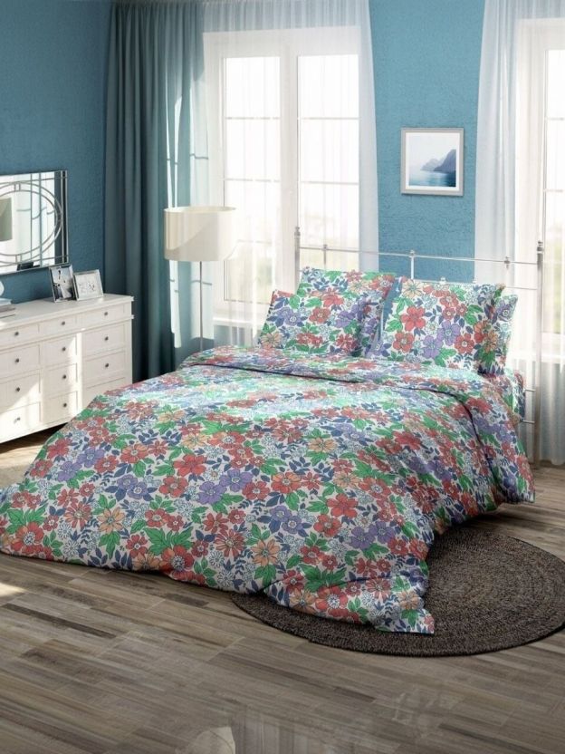 Часто спрашивают: подходит ли такой размер для евро-кровати или как выбрать размер постельного белья для двуспального матраса? Данный комплект оптимален для стандартных кроватей шириной до 160–180 см. В отличие от комплектов с синтетикой, бязь не электризуется и не скользит, а отсутствие застежек на пододеяльнике облегчает заправку. Яркий цветочный принт подойдет для классического или современного интерьера, а также станет практичным подарком на новоселье. Если вы ищете, чем отличается бязь от сатина — бязь более износостойкая и проста в уходе, не требует глажки.