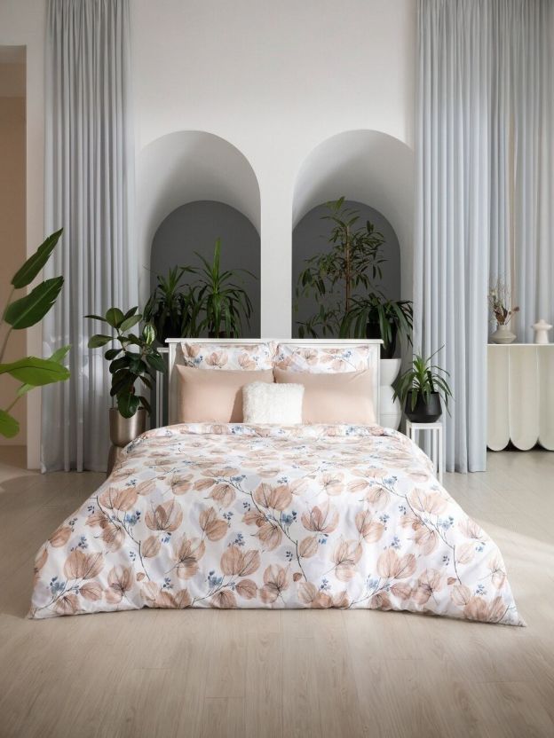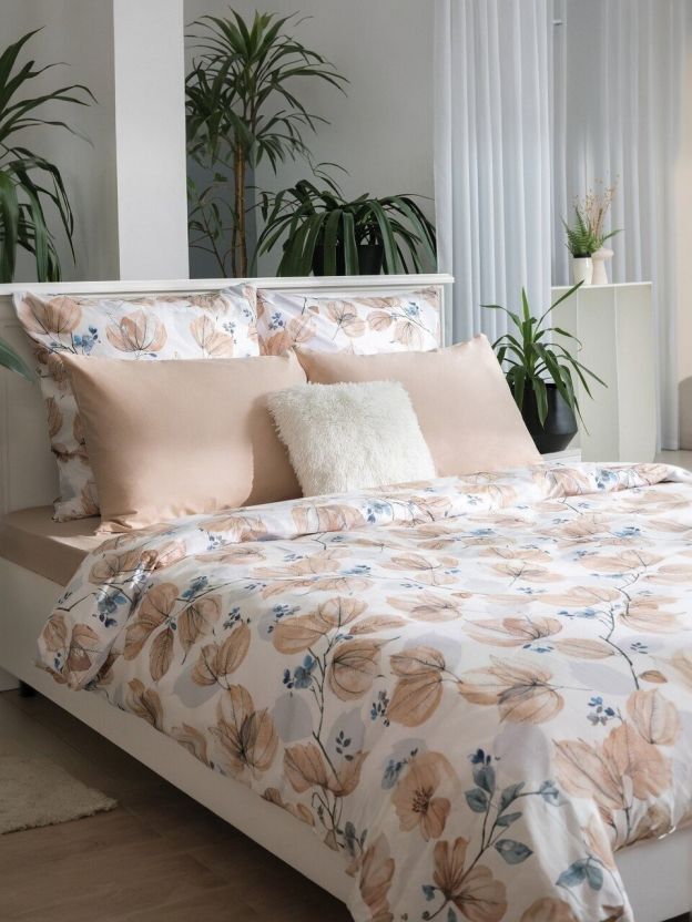 - Дизайнерский комплект Elegant autumn: эксклюзивный принт с цветами и ветками, создаёт атмосферу уюта и гармонии