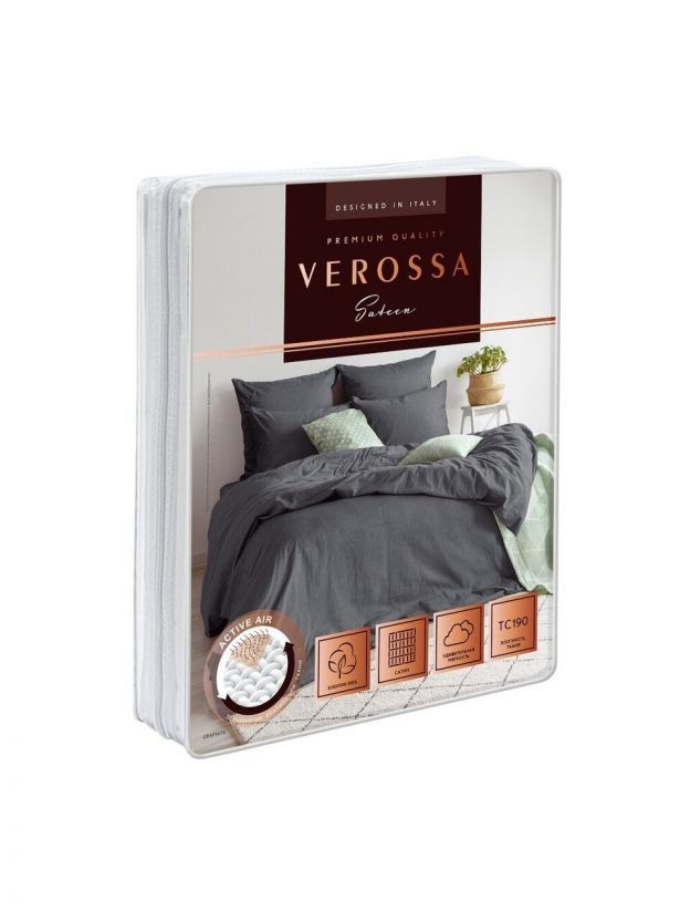 Постельное белье 2-спальное, простыня 220х240 см, 2 наволочки 70х70 см, пододеяльник 180х215 см, Verossa, сатин, Диагональ, Graphite, 790365