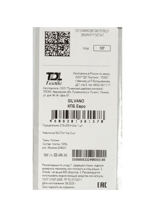 Какой состав и размер у комплекта Silvano 20463?