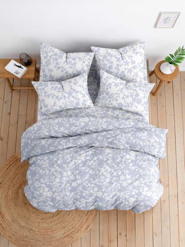 В отличие от аналогов из синтетики или смесовых тканей, бязь не вызывает раздражения даже при ежедневном использовании. Отсутствие застежек на пододеяльнике облегчает заправку и уход, что особенно удобно для дачи или гостевого дома. Часто спрашивают: «подходит ли для подарка?» — комплект поставляется в подарочной упаковке, что делает его отличным выбором для любого случая. Серый цвет с цветочным принтом гармонирует с современными интерьерами, не перегружая пространство.