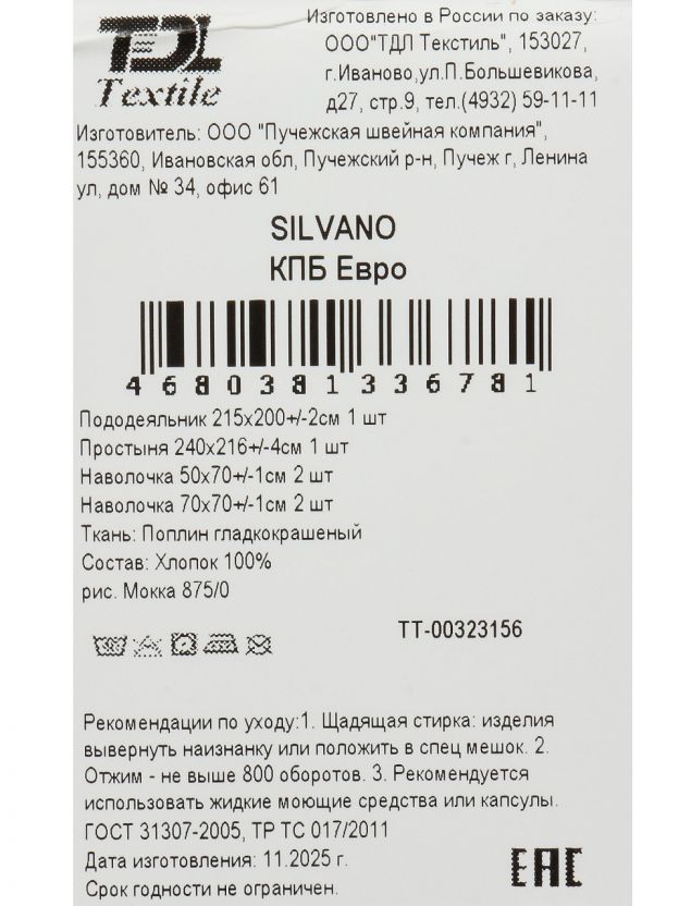 Какой размер простыни и пододеяльника в комплекте Silvano «Мокка»?