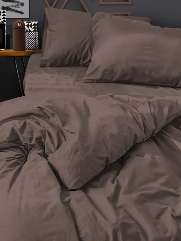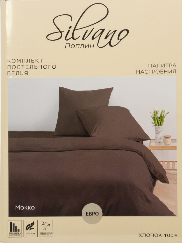 Постельное белье евро Silvano «Мокка» из поплина: 6 предметов, 100% хлопок, премиальный комфорт для сна и стильного интерьера.