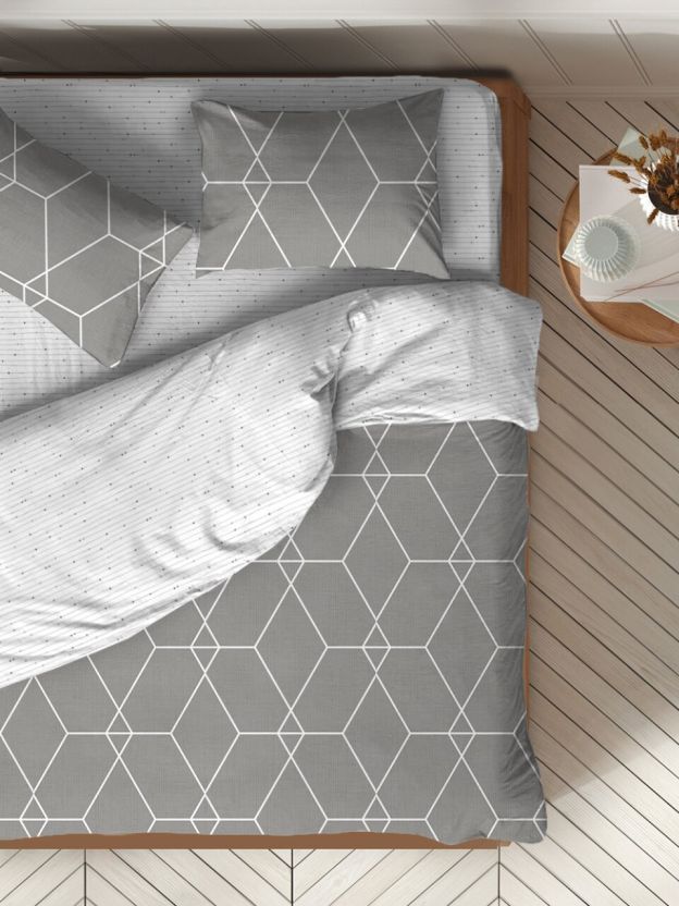 Если вы выбираете, какой комплект лучше для подарка, обратите внимание на универсальный серый цвет и современный геометрический дизайн. В отличии от аналогов из синтетики, это бельё не электризуется, не выцветает и подходит для людей с чувствительной кожей. Часто спрашивают, подходит ли для больших кроватей — евро-размер простыни (216х240 см) и пододеяльника (200х215 см) оптимален для большинства стандартных и увеличенных спальных мест. Комплект поставляется в подарочной упаковке, что удобно для оформления презента.