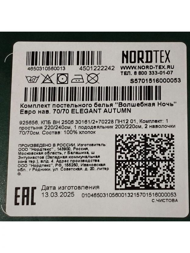Постельное белье евро размера Elegant autumn от бренда «Волшебная ночь» — это выбор для тех, кто ищет сочетание натуральных материалов и долговечности. Комплект выполнен из перкаля — плотной хлопковой ткани, устойчивой к износу и частым стиркам. Такой материал обеспечивает комфортный микроклимат во время сна, не вызывает аллергии и легко пропускает воздух. Если вы ищете, какое постельное белье лучше выбрать для осени и межсезонья, обратите внимание на перкаль: он приятен на ощупь, не скатывается и сохраняет форму после многих стирок.
