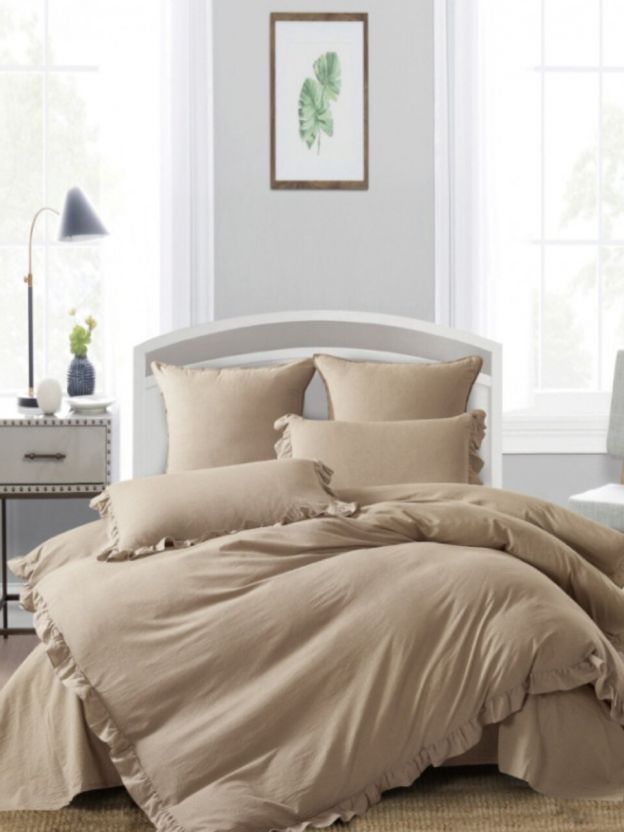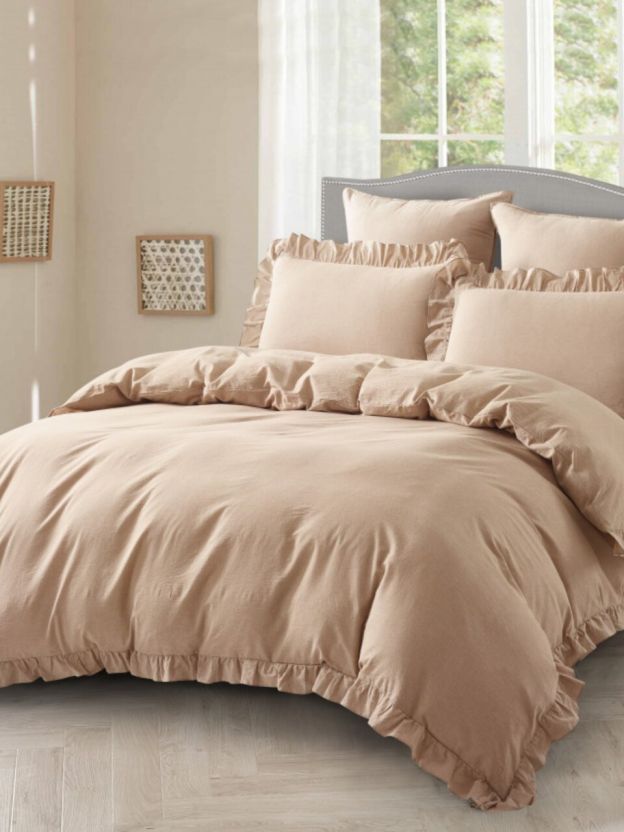 Комплект постельного белья Karteks VJ02 — это выбор для тех, кто ищет, какое постельное бельё лучше купить для евро-кровати или подарка. Варёный хлопок — современный тренд: он приятен на ощупь, не скатывается после стирки и сохраняет форму даже при частом использовании. Однотонный бежевый цвет гармонирует с любым интерьером, а отсутствие принтов делает комплект универсальным решением для спальни, гостевой комнаты или загородного дома.