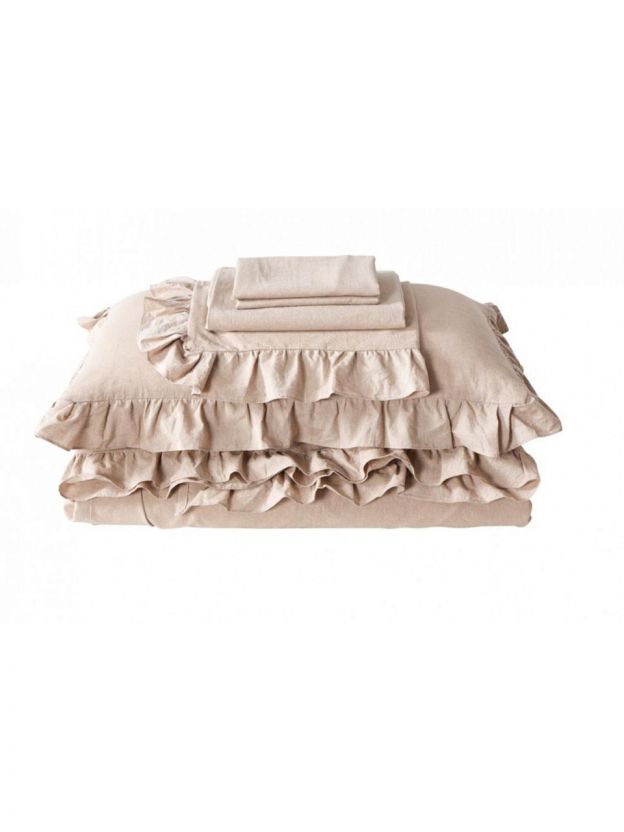 В наборе 6 предметов: простыня 230x250 см, пододеяльник 200x220 см на молнии, 2 наволочки 70x70 см, 2 наволочки 50x70 см. Поставляется в подарочной упаковке.